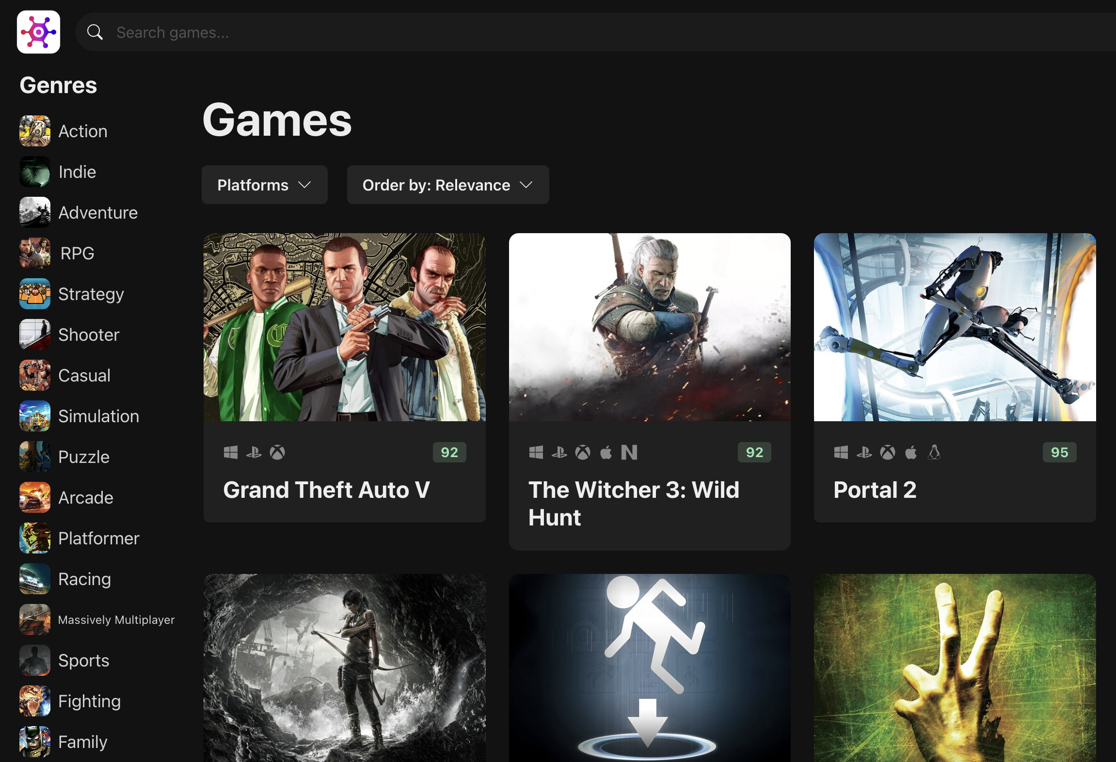 A video game discovery web app that helps you find new and interesting games to play. Search games by platform, genre, and more.